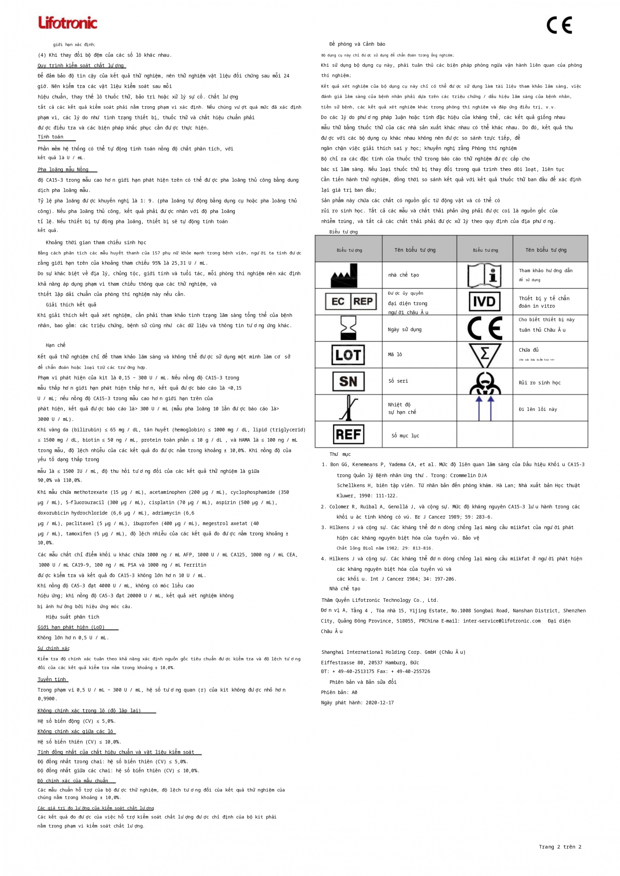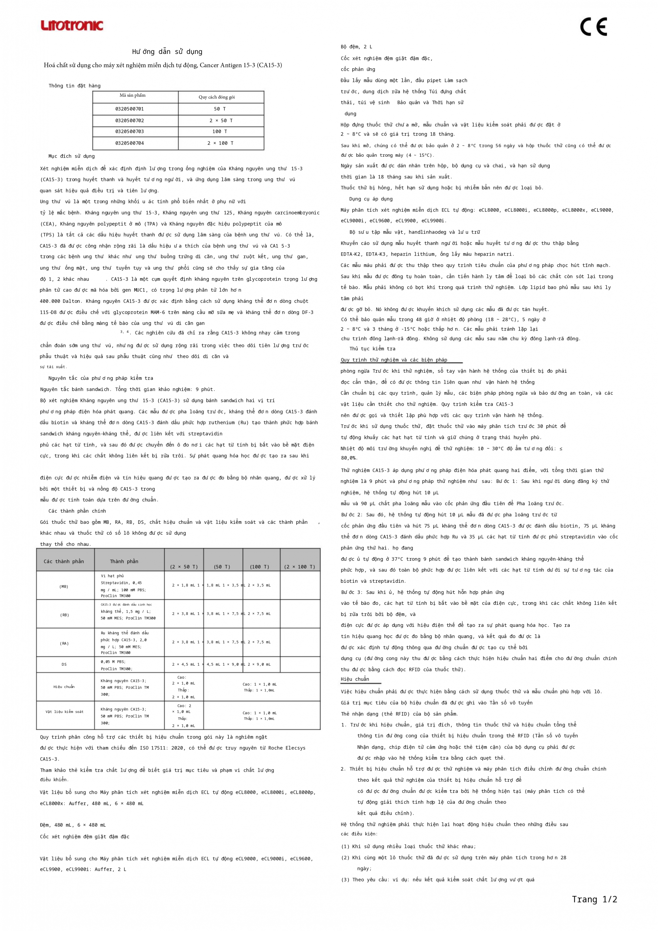 Hoa chất sử dụng cho máy xét nghiệm miễn dịch tự động, CA15-3, hãng LIFOTRONIC